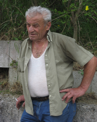 Ceccarini, who stopped smoking years ago, approaches, stooping under the