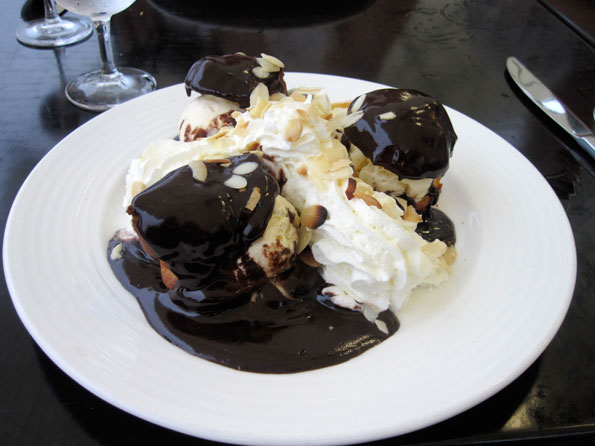 These are profiteroles, pastries with ice cream in the middle, from a restaurant near the Castillet in Perpignan. See an online gallery of more food photos here. Photo by Kristin O'Brien