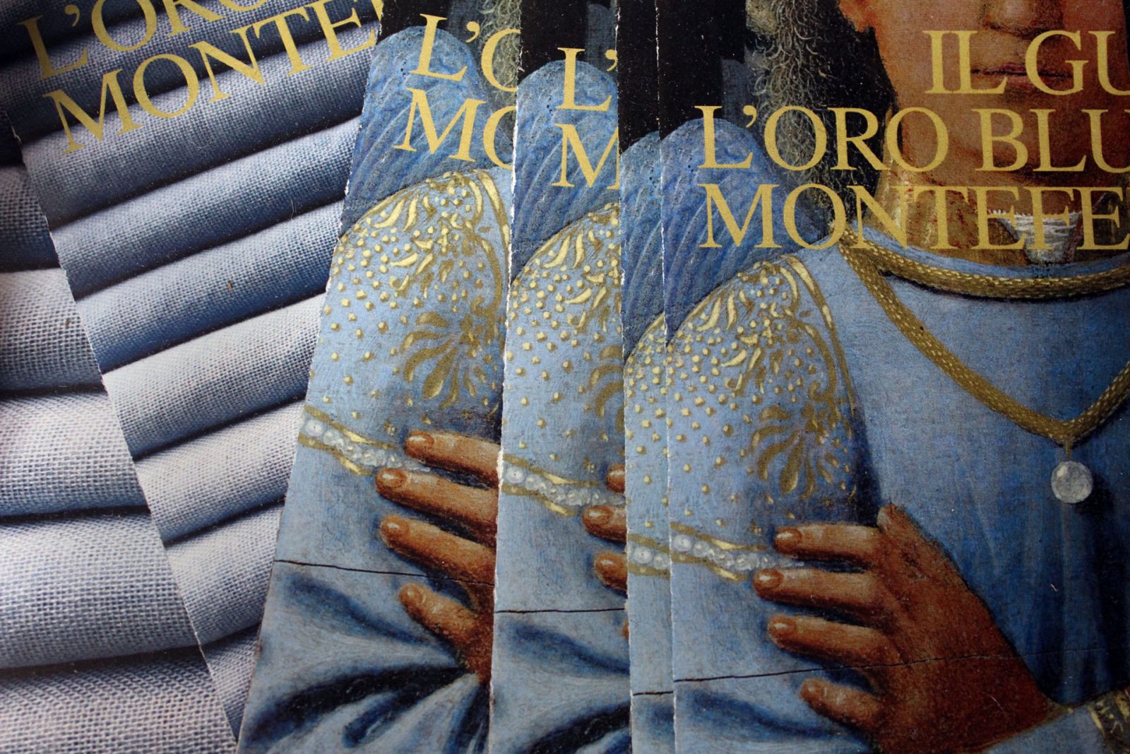 Before 1200, the only dye colors that were generally available for clothing were red, yellow, or black. Around 1200, Queen Bianca di Castiglia of France brought the expensive gaudo dye from the woad plant into style. Because of the complex process of acquiring the dye from the woad plant, anyone who was seen wearing the blue color was known to be wealthy. This “status symbol” lasted in Europe until 1600. As evidence of the high status of this sky-blue color, there is a painting located inside Urbino’s Ducal Palace by Piero della Francesca titled, Madonna of Senigallia. This painting includes an angel wearing blue to represent its importance during that time period. This angel is now on the cover of the Guado shop’s brochure.