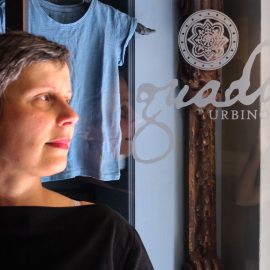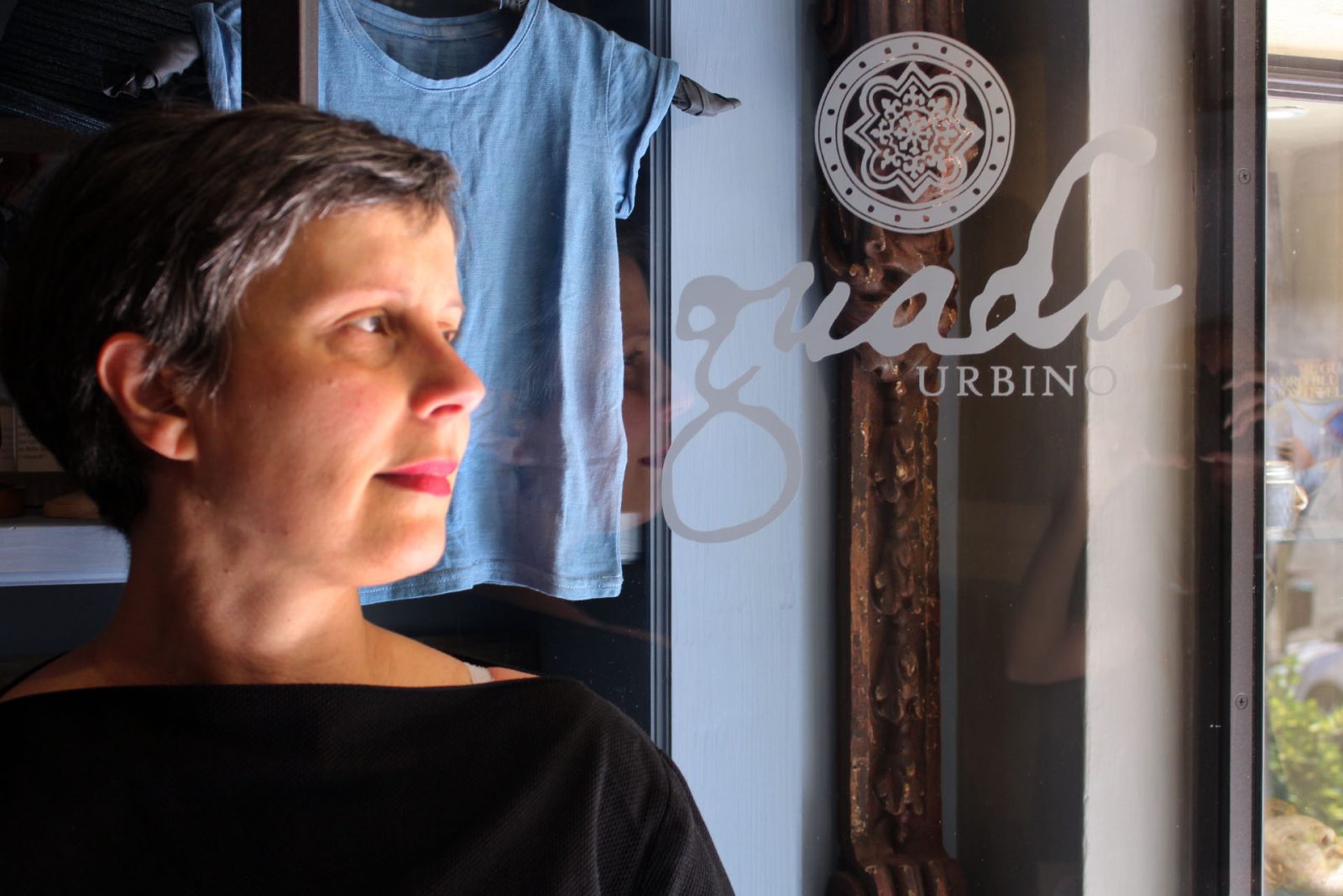 Before opening Guado, Ubaldi worked in the art restoration field, painted, and ran a bed and breakfast just outside Urbino. She has an artistic background and has worked with interior designers and architects. Ubaldi followed her husband to nearby Lunano where he was working. During this time she had a child and didn’t feel comfortable finding a full time job, therefore she simply continued with design. But there was always a thought in her mind about coming back to Urbino. When this thought turned into a reality, the idea of starting up something “old but new” came to her—the idea of a shop that would sell products dyed in guado. But Ubaldi’s idea was only a fantasy until she met others to help her pursue her passion.