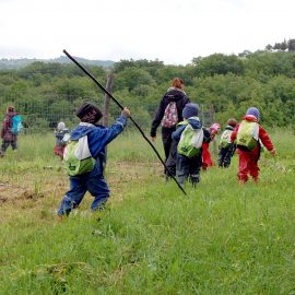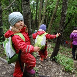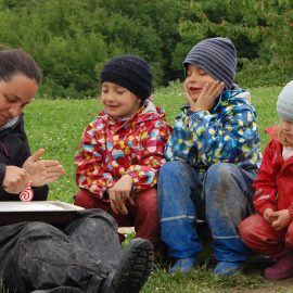 At Maestra Natura, co-founder Nicoletta Santini stands tall surveying the children with her months-old baby, her third child, strapped to her front. She is one of the school’s parents as well as one of the teachers. After working in a private preschool for 12 years, she raised her first daughter largely outdoors on her farm. With donkeys, goats, and other animals wandering around, she realized she wanted all her children to grow up this way.