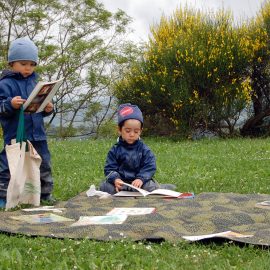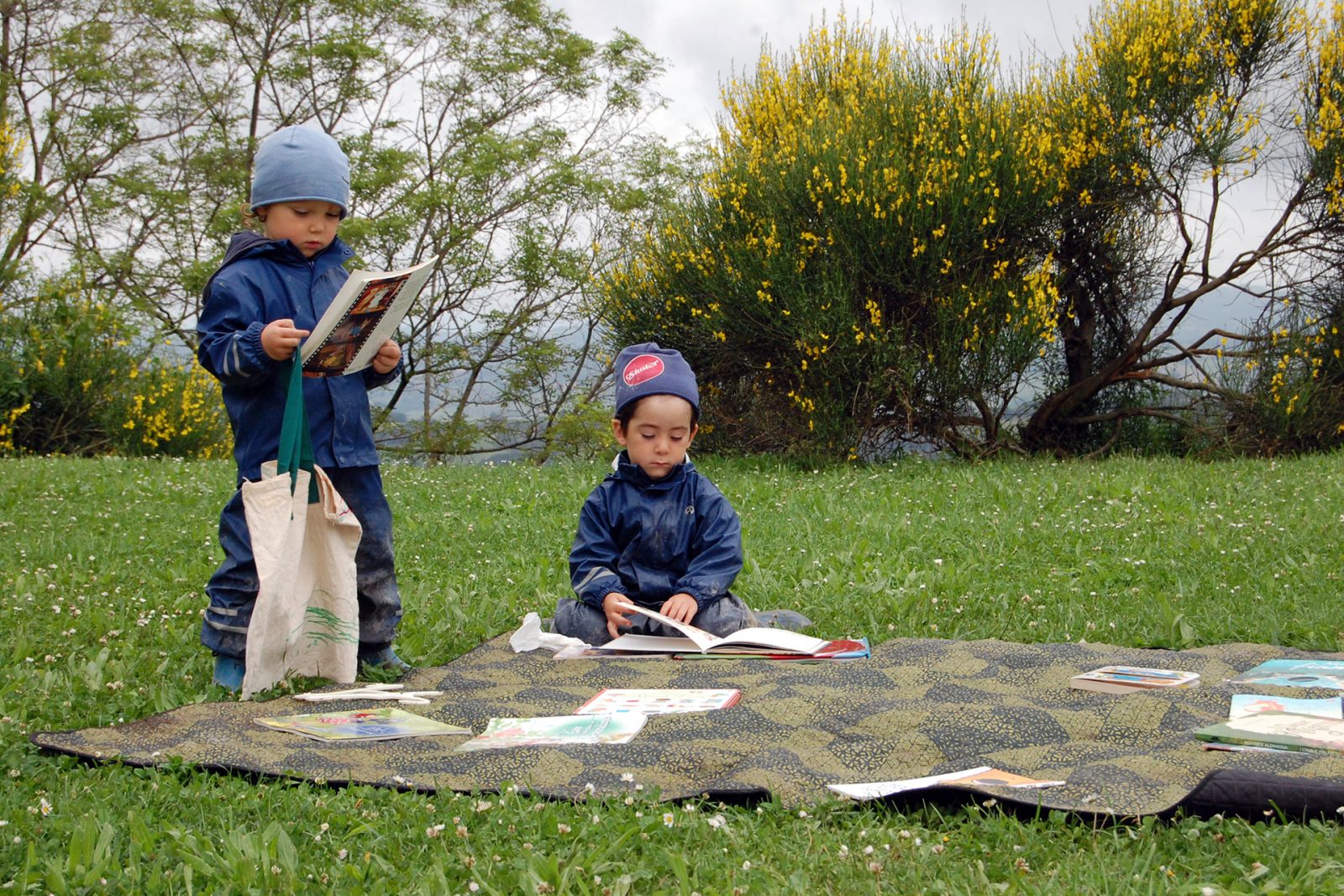 At the preschool Maestra Natura, founded by the L’albero Maestro association, nap time is a picturesque scene of children sleeping on blankets underneath a shade tree. Their library is a tarp with books scattered around for the children to choose from. Even the bathrooms are potty-training plastic toilets outdoors in the open air right next to the colorful boots they use when they are about to embark on a muddy adventure.