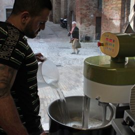 Romeo is the manager and pizza maker for Quadro pizza and is often praised for the quality of the products. He learned all there is to know about making pizza at San Patrignano, a drug rehabilitation facility in Rimini, just 30 kilometers north of Urbino.