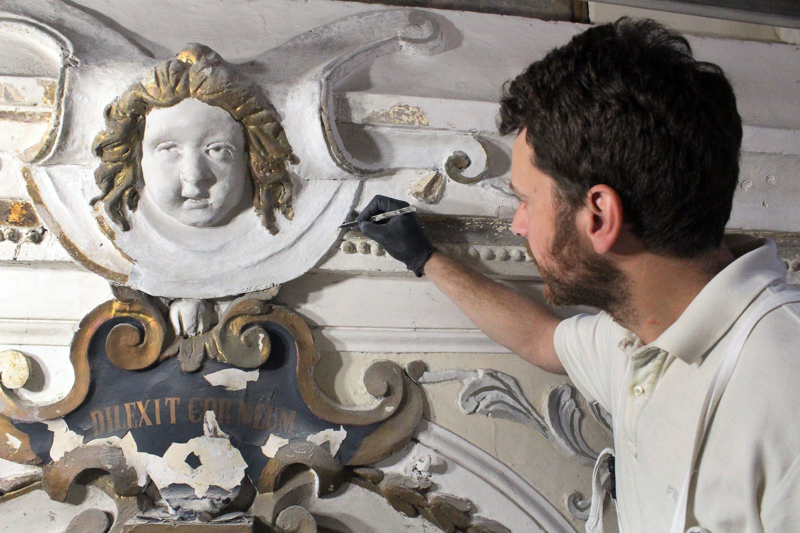 The Bacchioccas have been restoring the statues in the church since 2017, but the end is not in sight. They estimate that will take at least four more years to strip layers of paint from the gilded balcony, polish the frescoes on the ceiling, and restore the front of the church.